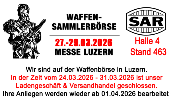 wir befinden uns vom 24.03.2026 bis 31.03.2026 auf der Waffen- und Sammlerbörse in Luzern.