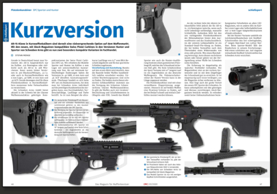 Ab jetzt Lieferbar.9x19mm / .40 S&W / 10mm AUTO / .45 ACPAlle SPC nutzen das orignal GLOCK Magazin.Einfaches Zerlegen ohne Werkzeug, mit den original AR15 PushPins.Der SPC wurde nach großer Kundennachfrage, über einen kompakten modularen halbautomatischen Karabiner, der die GLOCK Magazine der Pistole fast, konzipiert. Seine Eigenschaften und Leistungsdaten wurden speziell für den Sportschützen angepasst.Testbericht DWJ 03/2020